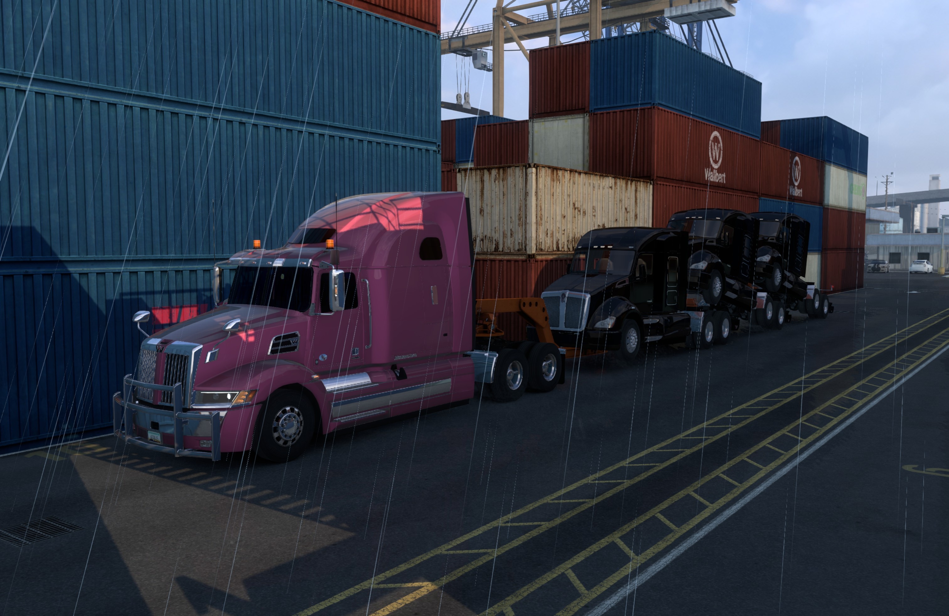 …where we deposit our cargo amongst the massive stacks of shipping containers.